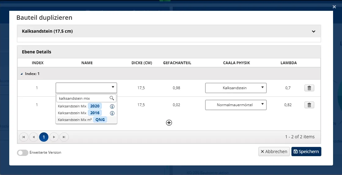 - Neben den bereits zur Verfügung stehenden QNG-konformen Bauteilen können Sie nun auch eigene erstellen und über das automatisch zugewiesene QNG-Label sofort erkennen, ob ausschließlich QNG-Datensätze (Rechenwerttabelle 2023) verwendet wurden.
